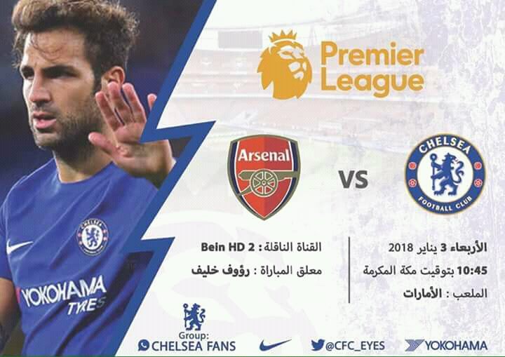 بث مباشر مباراة تشيلسي وارسنال 3.1.2018