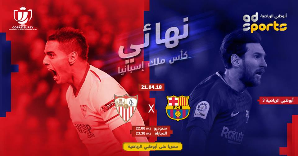 بث مباشر قناة ابو ظبي الرياضية 3 مباراة برشلونة واشبيلية نهائي كاس ملك اسبانيا