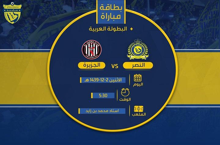 بث مباشر لمباراة الجزيرة الاماراتي والنصر السعودي 13.8.2018 البطولة العربية للاندية بجودة عالية موقع عالم الكورة